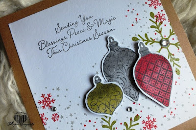 Sinterklaas is weer het land uit. Vandaag ga ik de kerstboom optuigen. Voor mij de tijd dat ik in de kerststemming kom. Dus zullen er nog vele kerstkaartjes komen. Vandaag laat ik een kaartje zien met de set Christmas Gleaming. Ik heb de kerstballen ingekleurd met de Stampin' blends. De bovenkant van de ballen heb ik met de donkere stiften gekleurd en de onderkant met de lichtere kleuren. Halverwege heb ik de kleuren gemengd, zodat de kleuren doorlopen. De tekst heb ik gemaakt met de set Snow wonder.